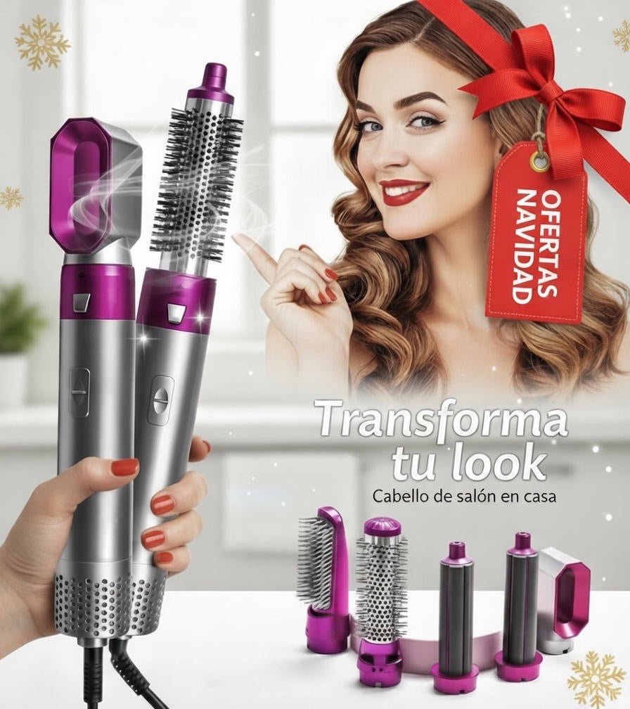 Descubre este Cepillo Secador 5 en 1, la herramienta multifuncional que transforma tu rutina de belleza. Es el aliado perfecto para conseguir un acabado de salón desde casa.