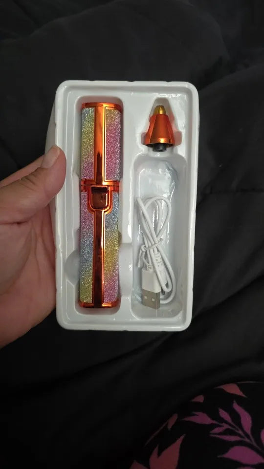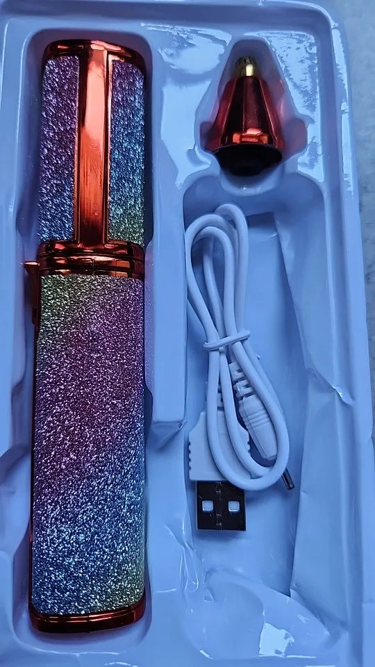 Con un acabado premium efecto purpurina, no solo es eficaz sino también bonito y sofisticado. Su forma ligera y ergonómica facilita su uso en cualquier lugar, brindándote confianza y seguridad al saber que cuentas con una herramienta profesional que cuida de tu piel de manera sencilla y cómoda.